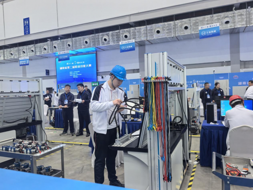 新设立的工业机械竞赛项目成为赛场焦点。现场,选手们全神贯注地根据仿真图组装管路和控制阀门,“液压与传动控制技术在生产生活中十分常见,汽车、工程机械等行业均有广泛应用。”负责该项目的场地经理杜婷介绍,这些技术正是当下湖南先进制造业发展所急需的。