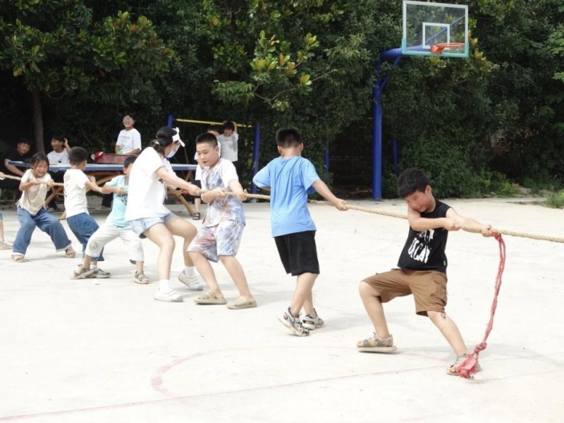 图为邢楼小学学生在运动会拔河的画面