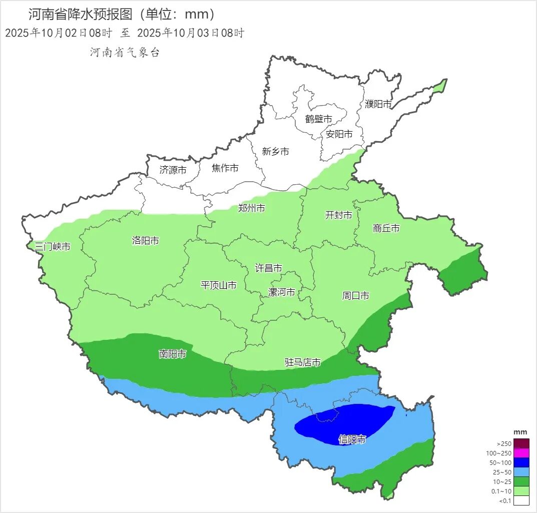 大象新闻·河南交通广播记者 宋冰霜 10月1日,记者从河南气象了解到,今天白天到夜里,全省阴天有小到中雨,济源、焦作、新乡和黄淮之间有大雨,其中郑州东南部、开封、商丘、平顶山、许昌、漯河、周口、南阳东部、驻马店北部部分县(市、区)有暴雨,