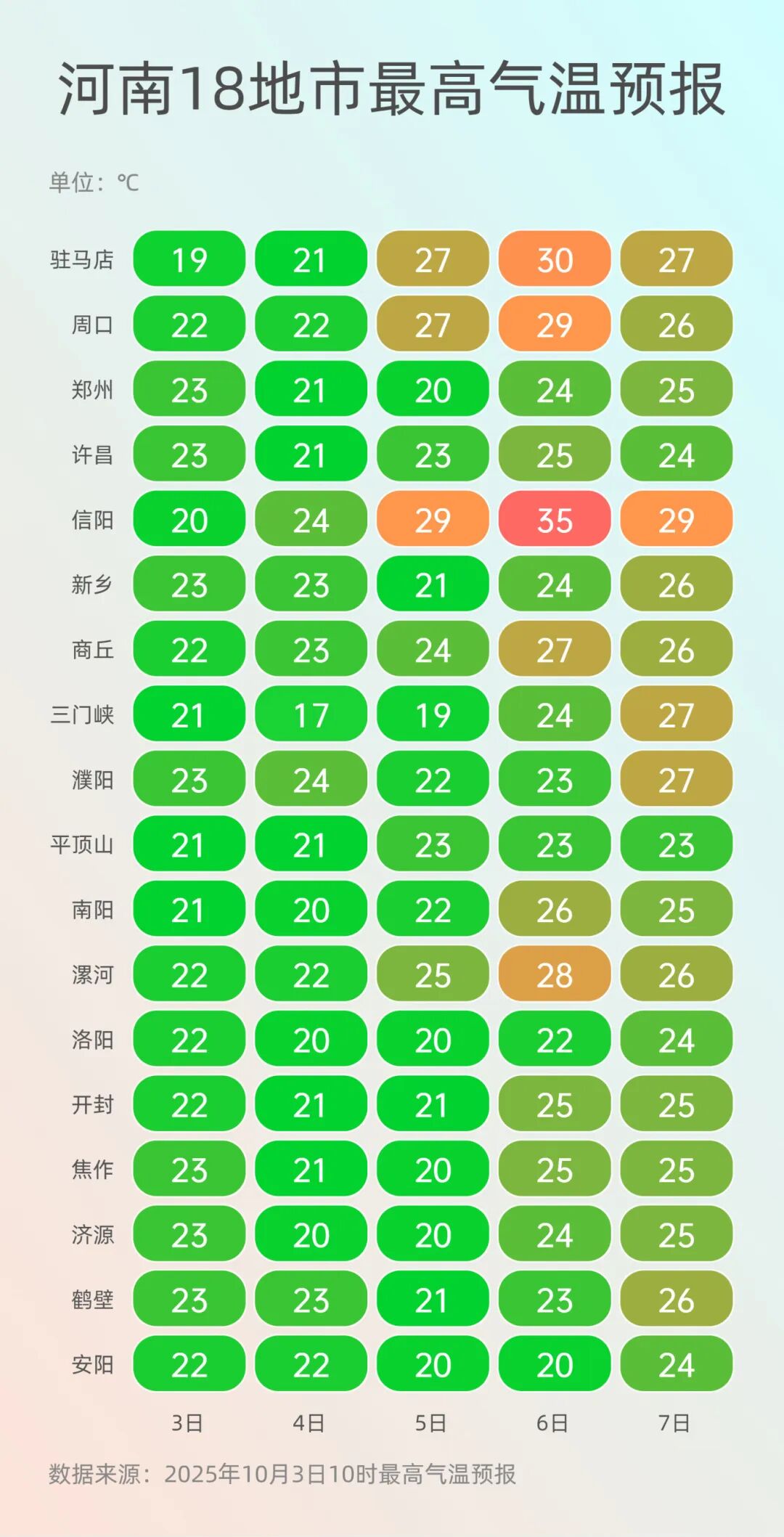 来源:河南省气象台2025年10月3日12时预报