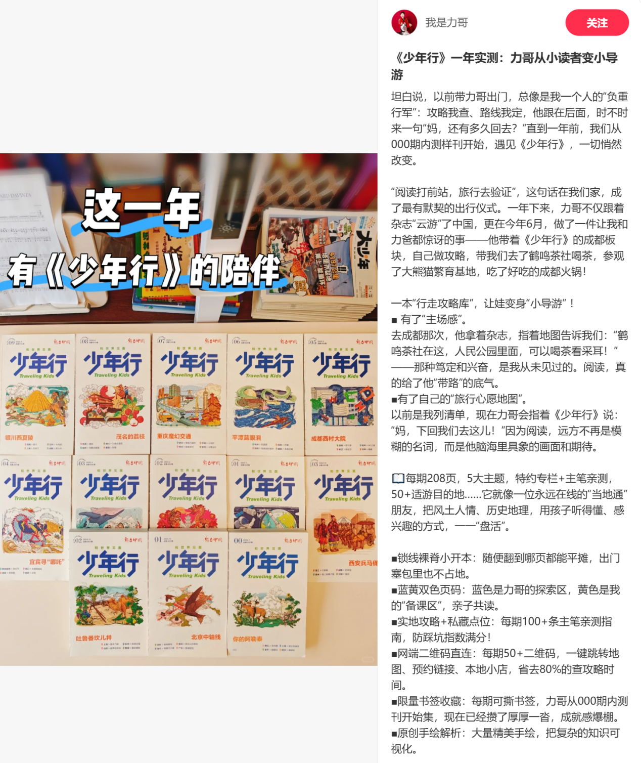 坦白说,以前带力哥出门,总像是我一个人的“负重行军”:攻略我查、路线我定,他跟在后面,时不时来一句“妈,还有多久回去”?直到一年前,我们从000期内测样刊开始,遇见《少年行》,一切悄然改变。
