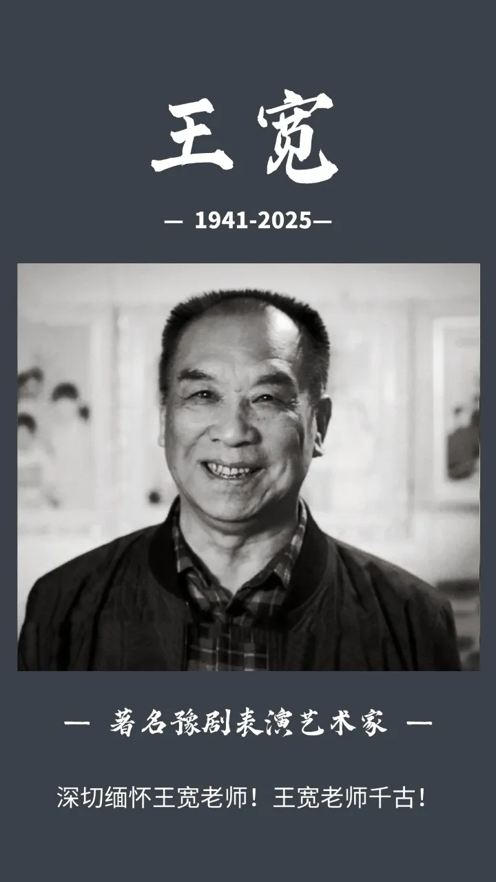 10月3日晚,郑州市戏剧艺术保护传承发展中心发布消息,中国共产党党员、一级演员、著名豫剧表演艺术家、原郑州市豫剧团副团长王宽同志,因病医治无效,于2025年10月3日10时20分在郑州逝世,享年85岁。