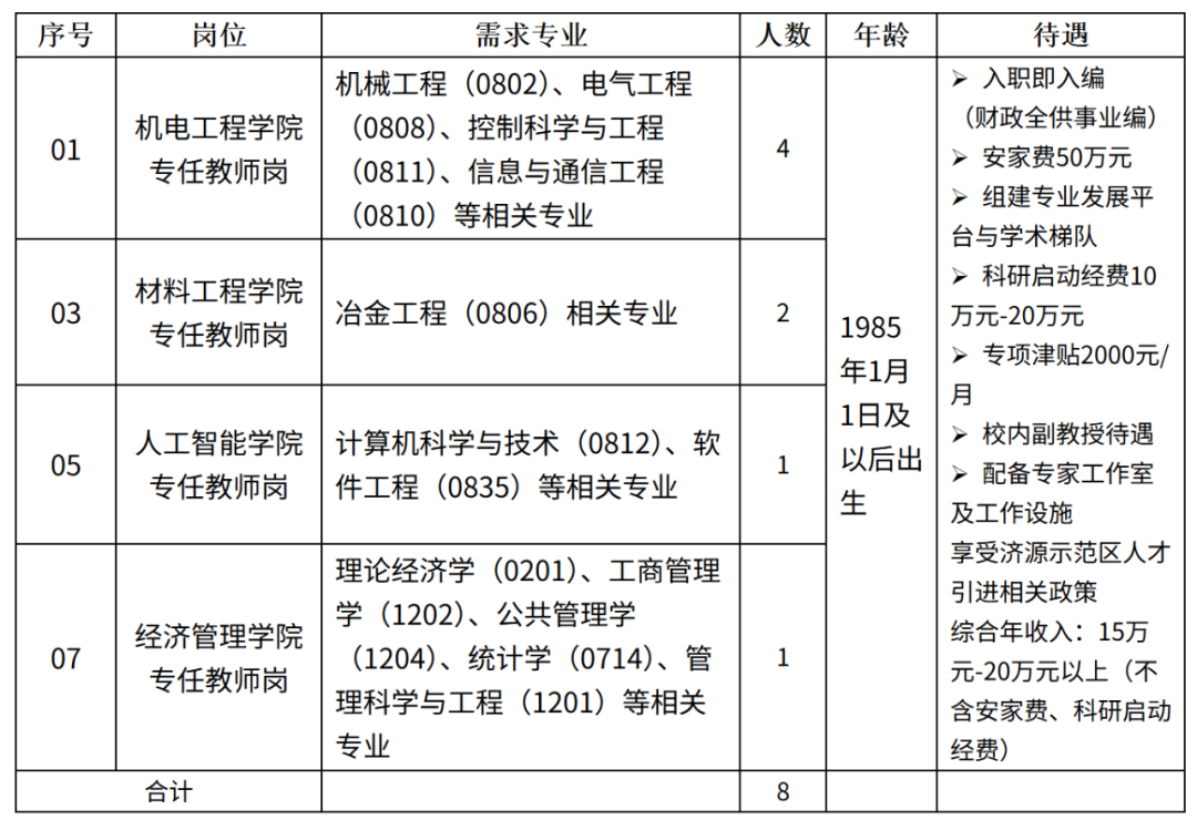 (三)博士(含博士后出站人员):8人,年龄40周岁以下,见下表。