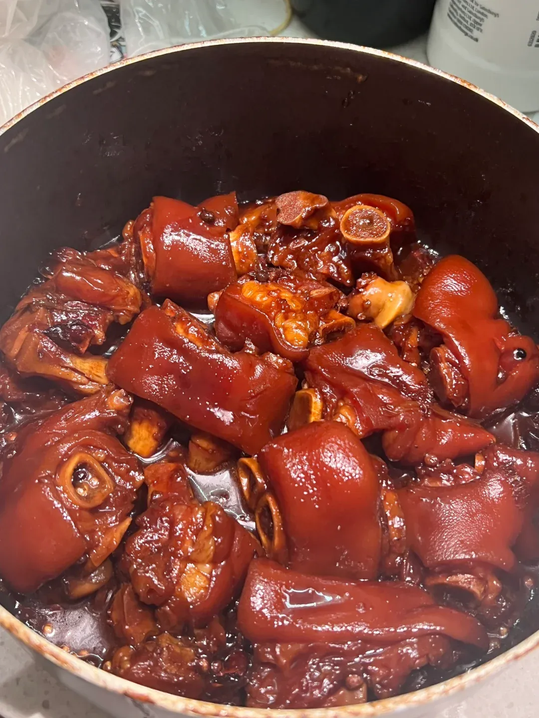 邓城猪蹄是周口地区的传统名吃,以当地特产猪蹄配以十余种中药材卤制而成,色泽红亮,皮筋软糯,肉质鲜嫩,具有滋补养颜的功效。