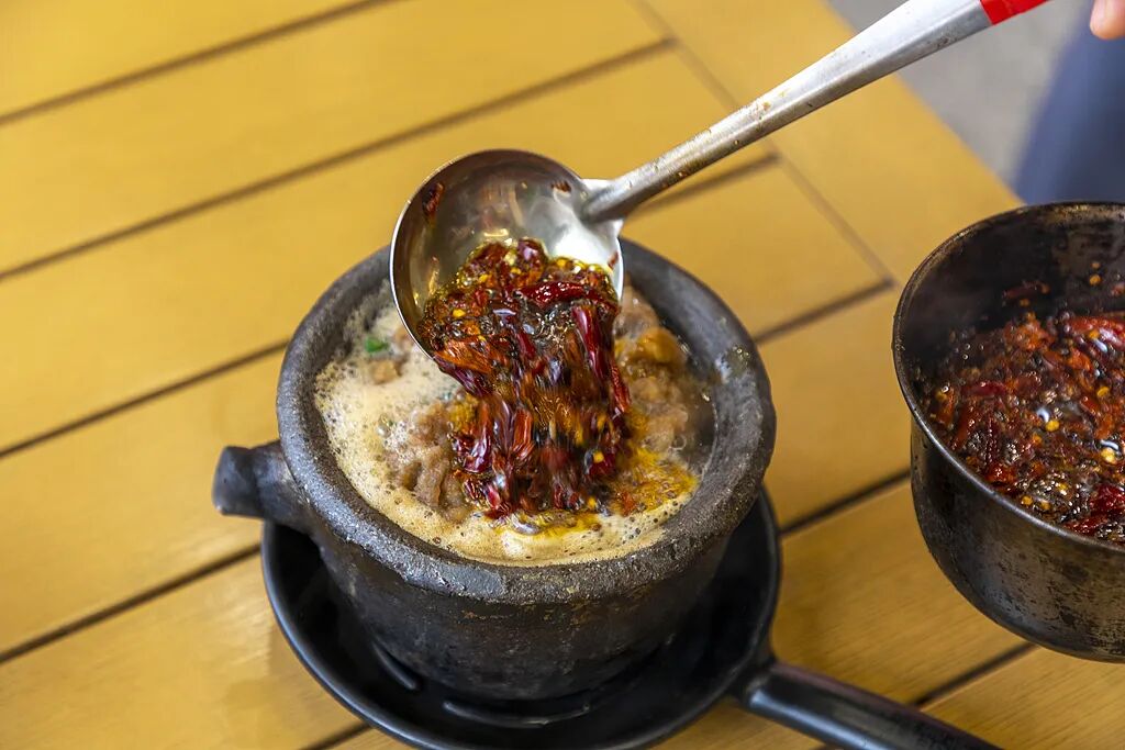 武陟砂锅,传承千年,是黄河文化孕育出的精华。制作时,先将肉类食材热锅清水断生、去异味,再放入砂锅内,用小火慢慢煨煮,让食材的鲜味充分融入汤中,直至汤味浓厚,肉质酥嫩香烂。