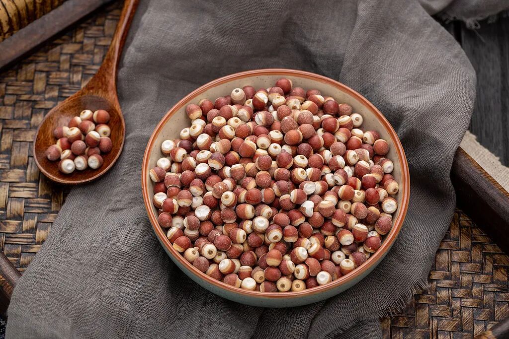 鸡头米(芡实)是“水八仙”里最惹人爱怜的一位,信阳人称之为“水中明珠”。凌晨采撷,手工剥壳,指尖轻巧地一捻一推,才露出那糯白的米肉。简单水煮,撒点糖桂花,软糯中带弹,清甜中泛香。