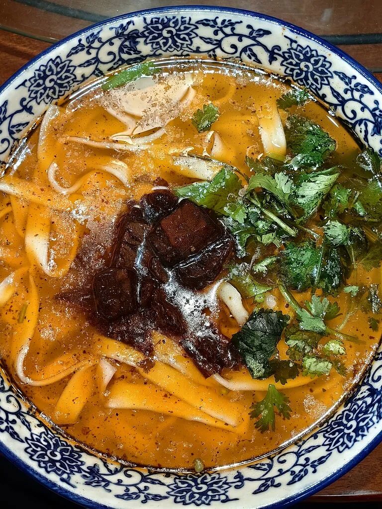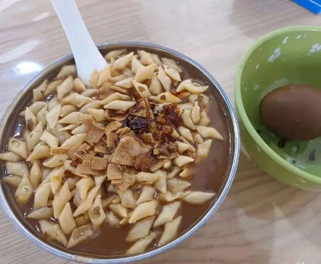 烩面的灵魂在于用小山羊肉和腿骨精心熬制超5小时的汤,那汤白得像牛乳一样。面条也超有讲究,优质小麦粉加鸡蛋和盐,反复揉搓,筋道得很!2021年,郑州烩面制作技艺入选河南省第五批非物质文化遗产代表性项目。
