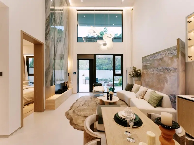 北京山谷坐落于燕山山脉的天然怀抱中,周边森林覆盖率高达71.2%,其中原生林木占据重要比例,形成了极为优越的生态基底。每天清晨,沿着清水河岸散步,呼吸着富含松针清香的清新空气,让人顿感心旷神怡。与城区时常出现的空气污染相比,这里的每一次呼吸都成为一种享受。更值得一提的是,这里夏季平均气温较北京城区低5-8℃,凉爽的自然清风贯穿室内,大幅降低了空调使用频率。无论是空气质量还是体感舒适度,北京山谷都展现出了明显优于城区的居住环境。