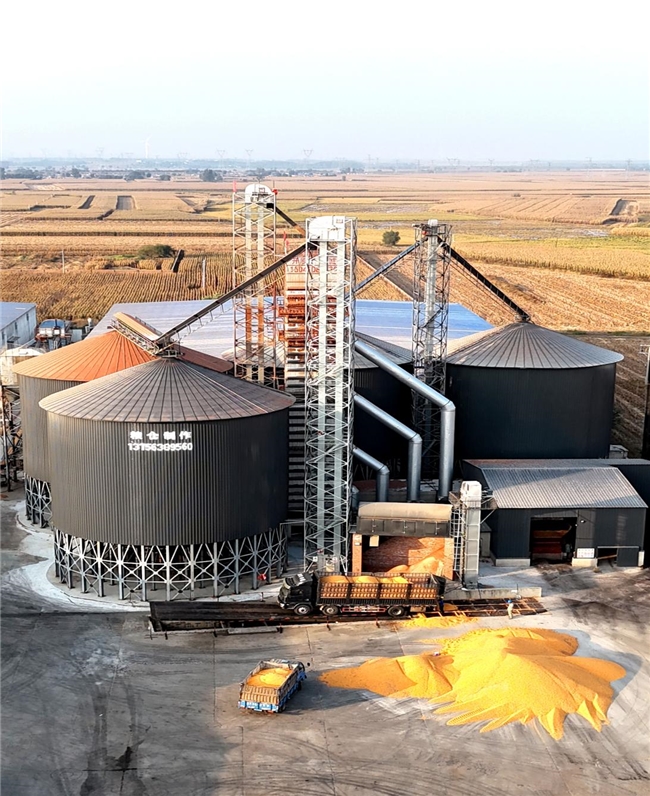 先说那座“粮食烘干神器”:一台烘干塔每天能烘干800吨湿粮。每到秋收季,连阴雨天气总是农户的“心头患”——刚收割的粮食带着潮气,堆在家里容易发霉、发芽,卖不上好价钱。但只要把湿粮送到满福仓,烘干塔就能“大显身手”:玉米、水稻倒进去,经过专业烘干工艺,一天时间就能脱尽多余水分,变成色泽好、耐储存的“干货”。有一年秋收连下一周雨,周边农户送来的湿粮堆成了小山,满福仓的烘干塔连续运转,硬是把所有湿粮都及时烘干,没让农户受一点损失。