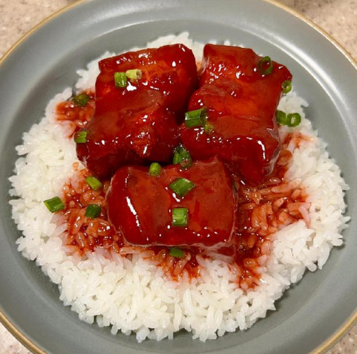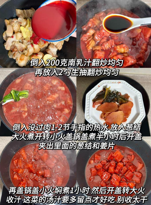 制作这道菜有个关键要点:需保留充足汤汁。这汤汁堪称灵魂——将五花肉铺在米饭上,淋入两勺汤汁,再把肉捣碎与米饭拌匀,腐乳的咸香裹着米粒,油润适口,每一口都是满足感。