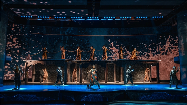 当龙马自“黄河”跃然而出、神龟背负“洛书”浮现在洛水之上时,全场观众惊叹不已。百吨级水效系统真实模拟出洪水倾泻的震撼场景,配合精准的风雨雷电特效,让古老传说变得可感可知。
