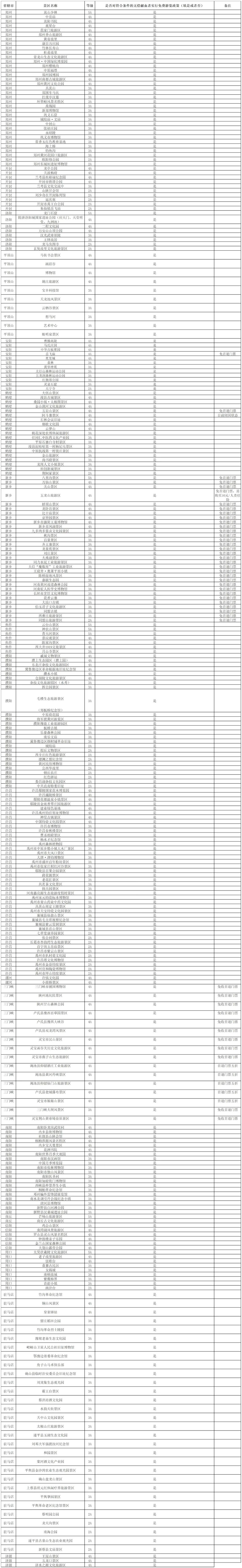 附:无偿献血相关激励政策景区名单