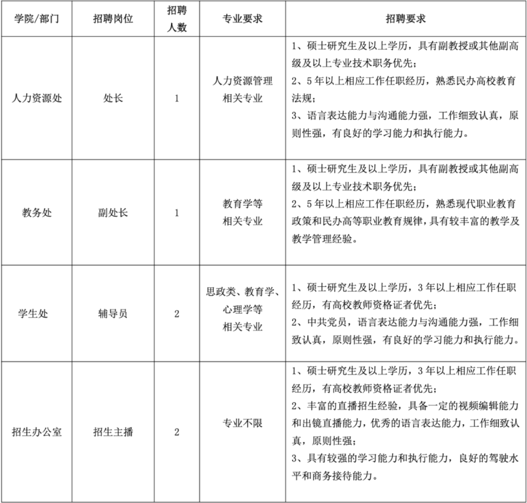 面向社会招聘高层次、紧缺专业19名。
