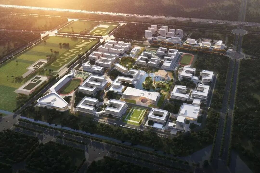 河南开封科技传媒学院新校区项目立足“礼乐相生,无界交融”理念,校区将中原文化、黄河文化、宋文化融入建筑肌理,设计取意“开元通宝”,构建“天圆地方”的整体格局,基础教学楼外立面采用开封古城墙青灰色与现代白色玻璃幕墙形成时空对话,综合体育馆以椭圆造型搭配黄色格栅,如黄河波涌,形似展翅天鹅,与操场看台自然衔接,内部庭院借鉴宋式园林与书院布局,打造“园中有院、院中有园”的沉浸式空间,实现传统意蕴与现代功能的完美融合。