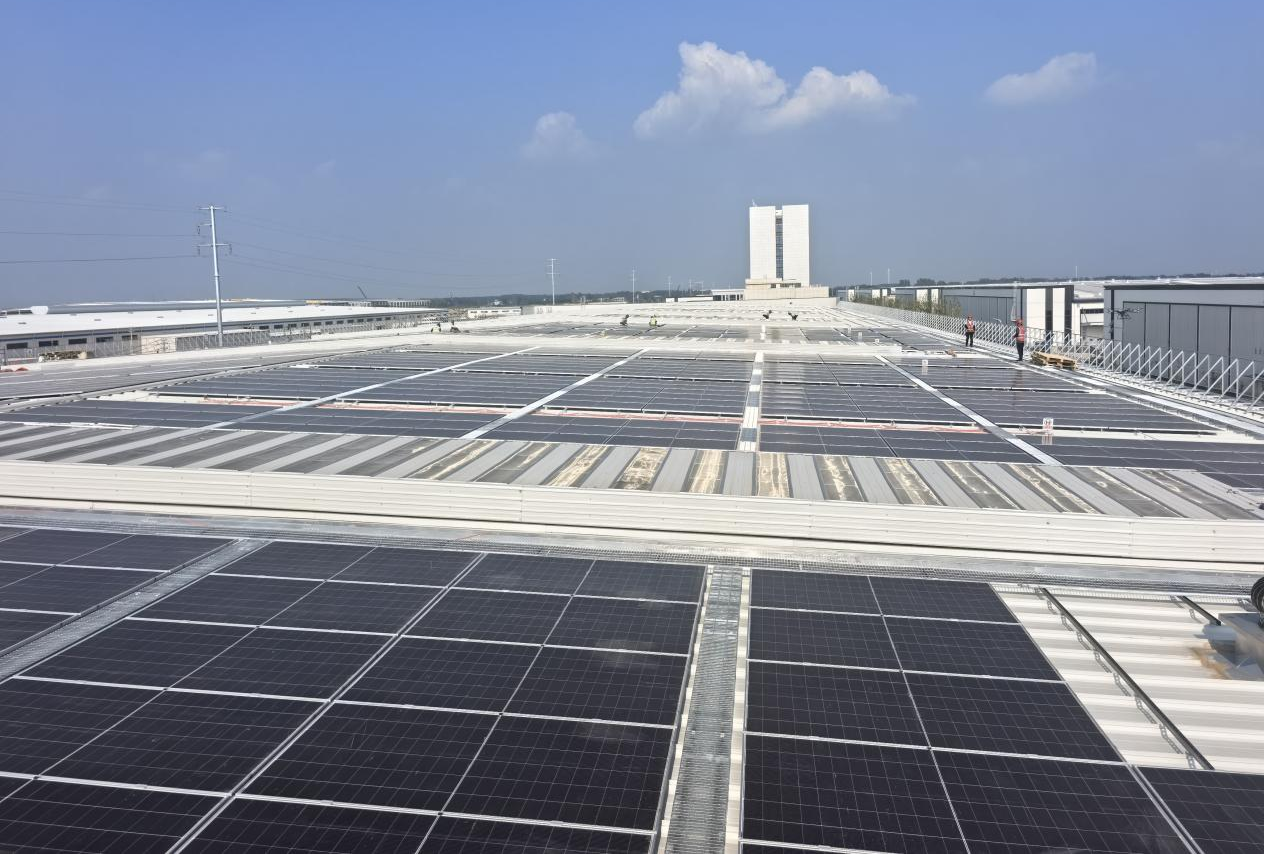 图:西作业区仓储用房顶部布局光伏发电设施,为园区提供清洁、可再生的能源供应