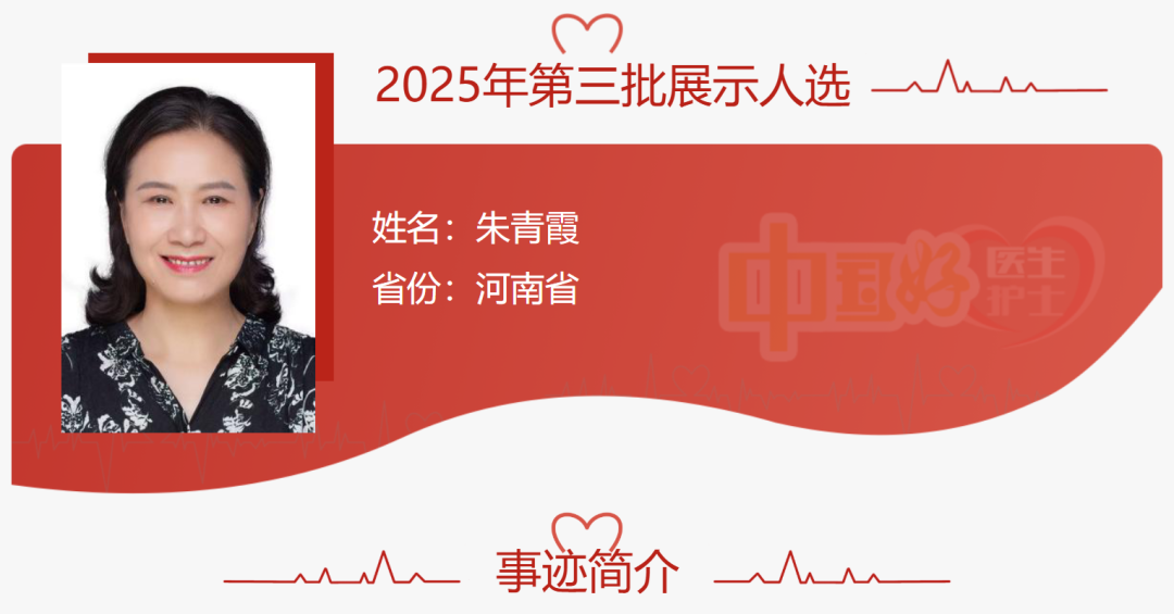 朱青霞,女,1967年6月出生,无党派人士,漯河市第二人民医院中医针灸科主任医师。深耕临床一线工作34年,在脑血管疾病及外伤引发的偏瘫、面瘫等疑难重症的诊疗上,取得了较大成就;将“带状疱疹”常规治疗时间从1-3月缩短为7天左右,极大缓解患者痛苦。2025年获评全国先进工作者,2022年获全国五一劳动奖章。
