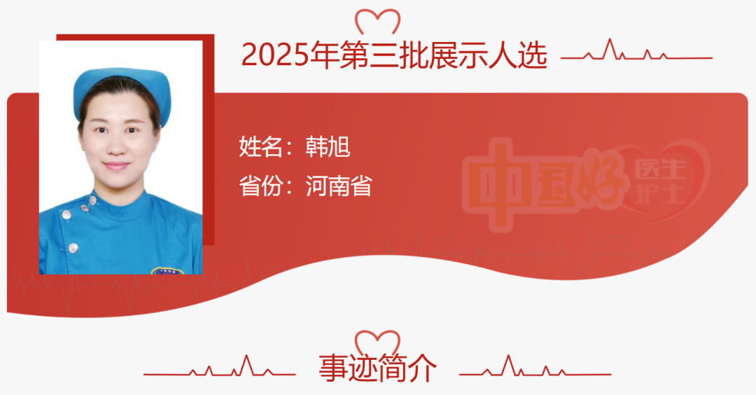 韩旭,女,中共党员,1984年5月生,河南省人民医院急诊科急诊留观护士长,先后获得“河南省五一劳动奖章”和“出彩河南人”之第五届最美护士荣誉称号。