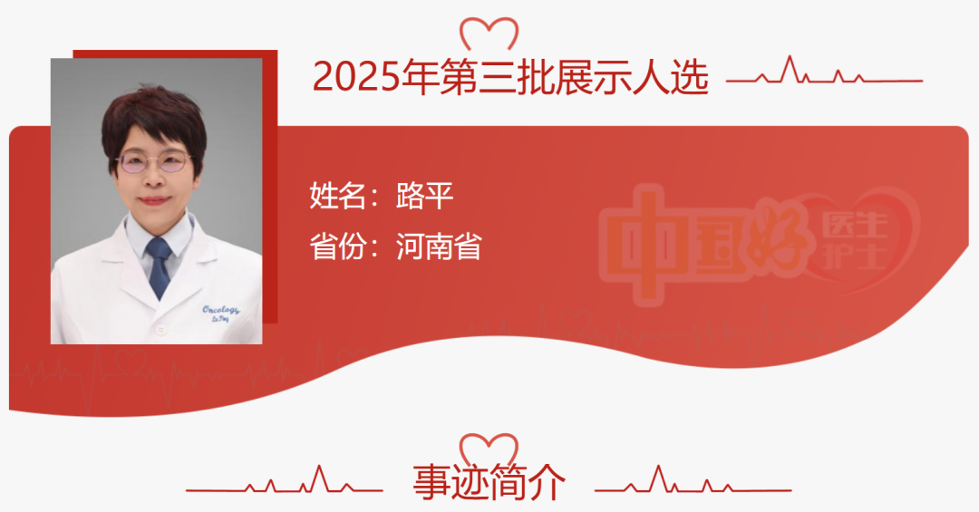 路平,女,汉族,1969年11月出生,中共党员,新乡医学院第一附属医院肿瘤医院院长兼博士后工作站主任。主任医师、教授、博士生导师。先后荣获全国五一劳动奖章、全国白求恩精神践行者、河南省五一劳动奖章、河南省教科文卫体系统“优秀工匠人才”等称号,在国家级、省级学会担任多个主要学术职务。她冲锋在前、勇于创新,闯出党建业务融合新格局、摸索出一套扎根基层、服务基层肿瘤医院发展新模式,带领团队多次荣获国家临床重点专科建设项目、劳模创新工作室等荣誉。