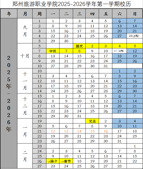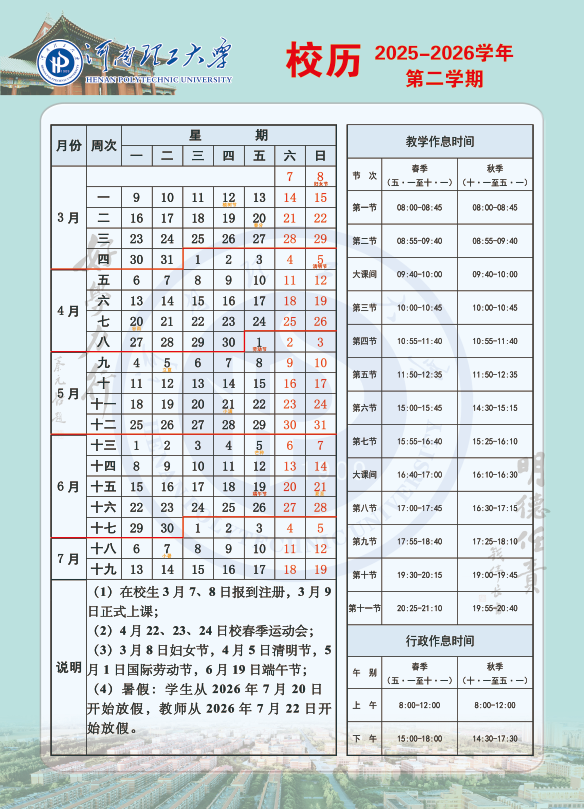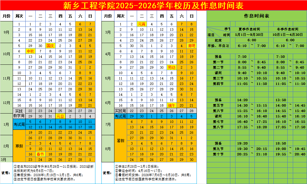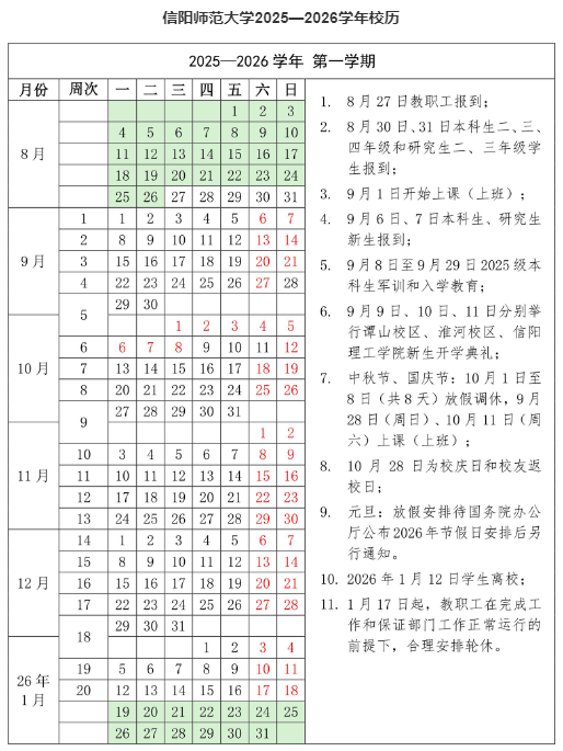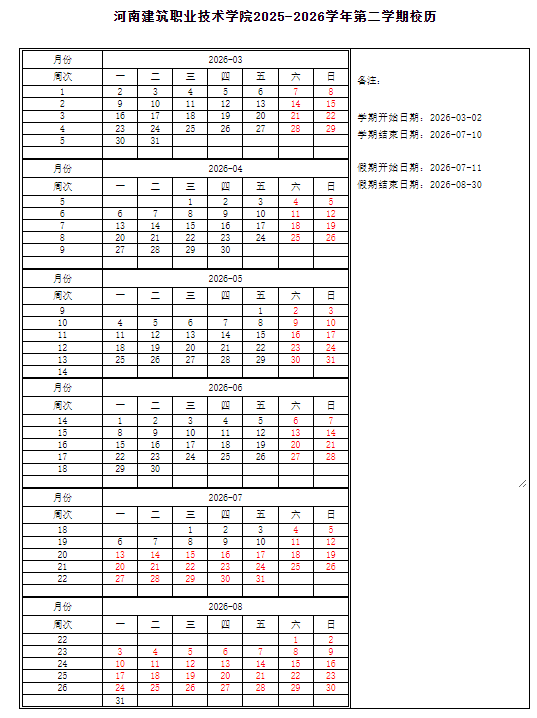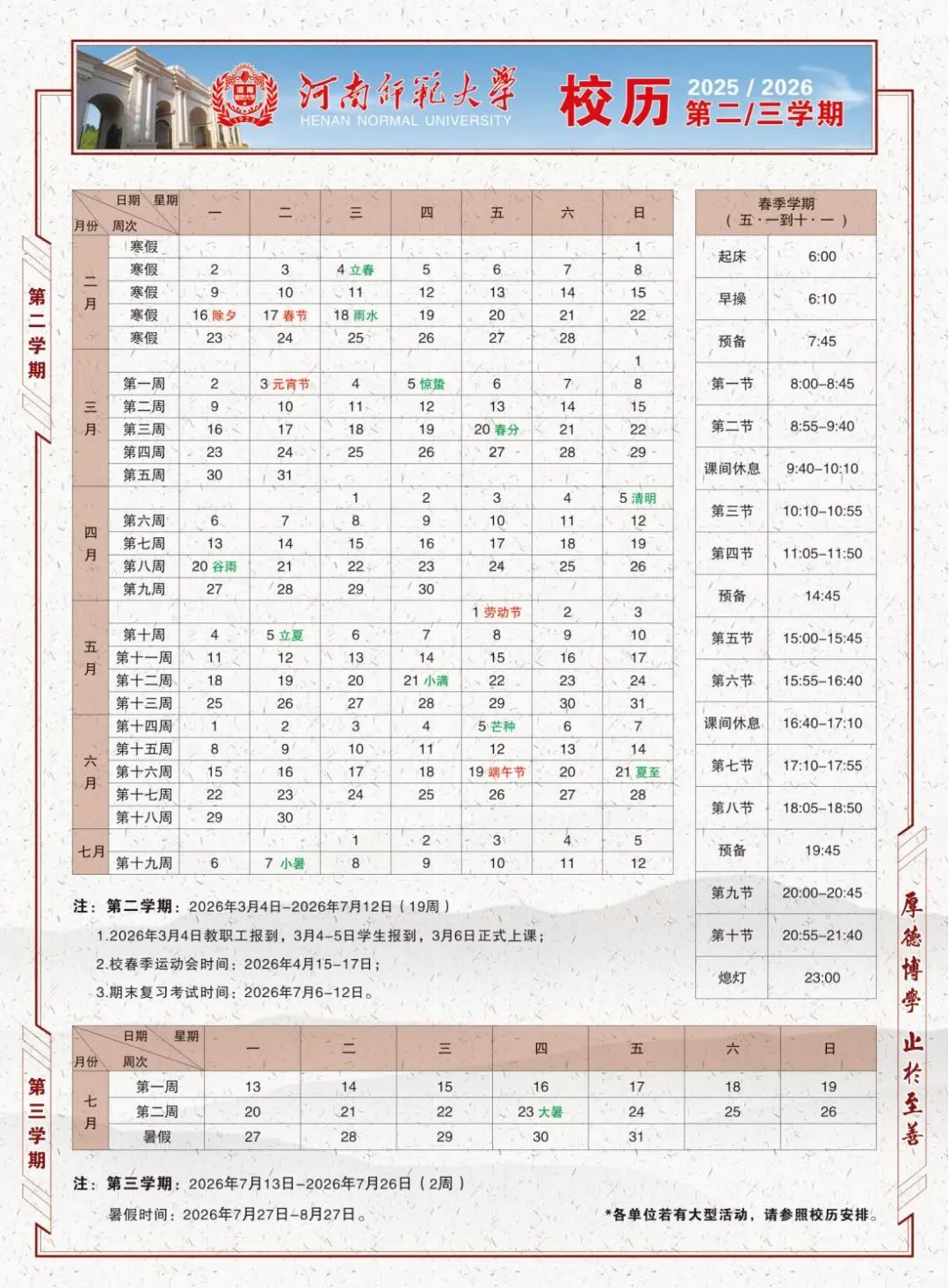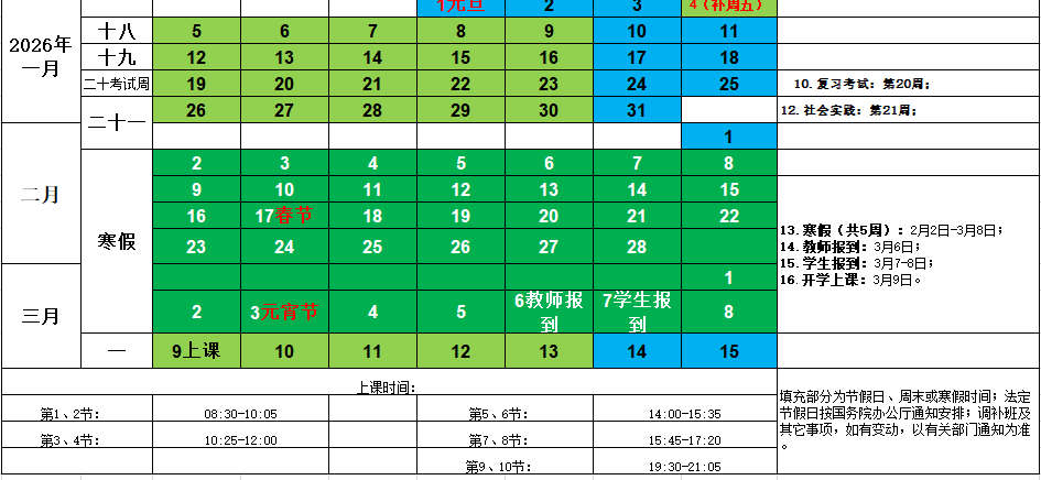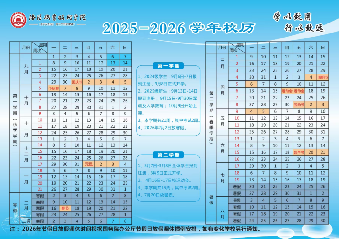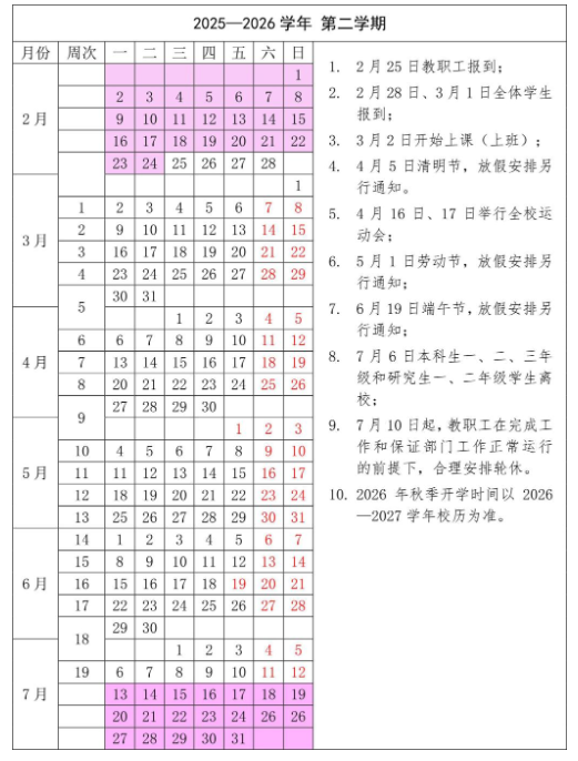 注:2026年节假日放假调休时间根据国务院办公厅节假日放假调休惯例安排,如有变化学校另行通知。