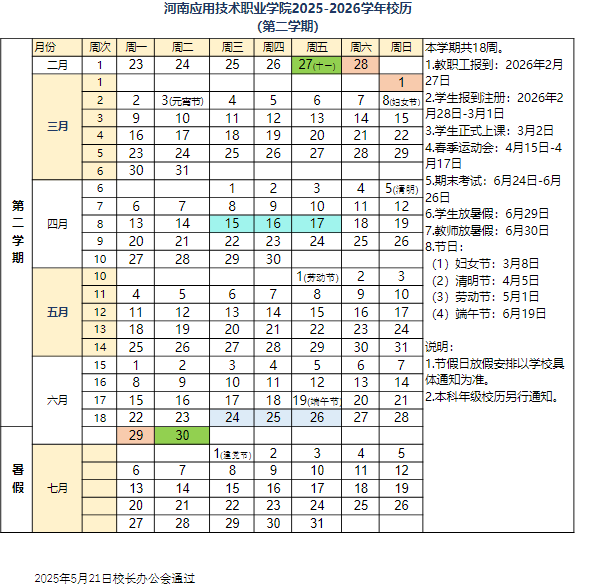 第二学期:2026年2月28日—2026年7月5日(18周)