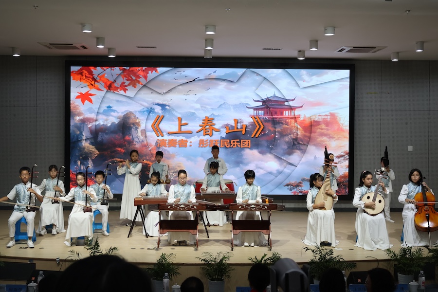 成果展示环节中,学生们代表结合竹编等课程经历,讲述“一个竹哨里的匠心”“一叶竹船中的文化密码”等故事,同步展示的非遗作品不仅是技艺的呈现,更是“劳动创造美”的生动诠释。京剧表演与民乐演奏则以艺术形式演绎非遗魅力,让传统文化在校园中焕发新的生机。