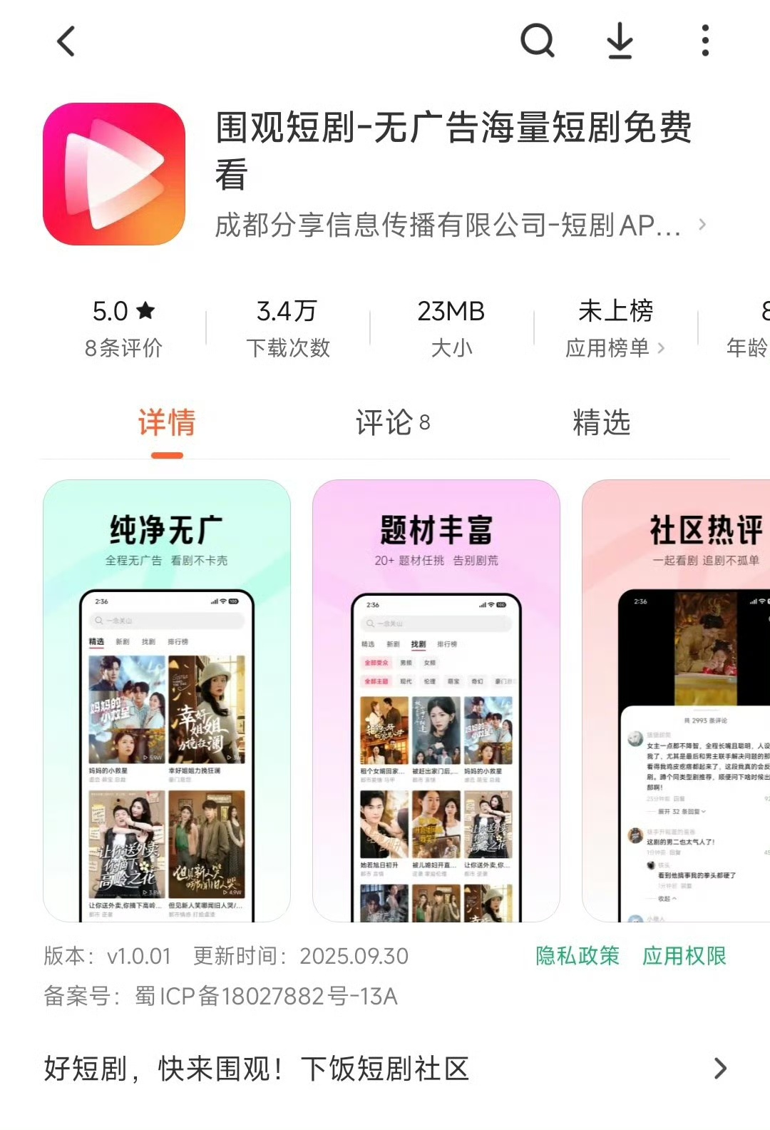 今天,小米入局短剧赛道的新闻,引发了众多关注。经过记者实际操作,小米确实已经在旗下应用商店上线了名为“围观短剧”的独立APP,截止今天上午已经有3万多人下载。