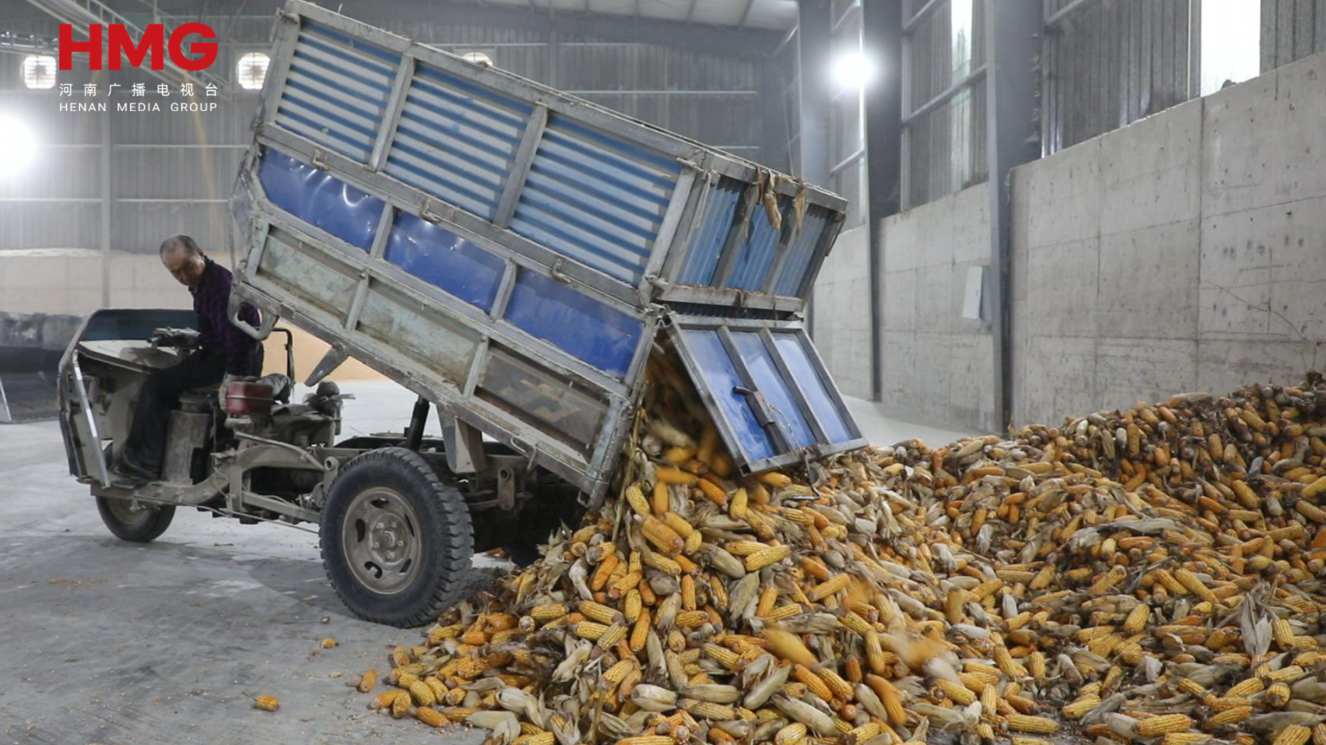 在烘干点内,不少农户正在对玉米进行测重、卸货,刚从田间转运来的湿玉米还带着泥土潮气,就被农户们卸到预处理车间等待烘干。