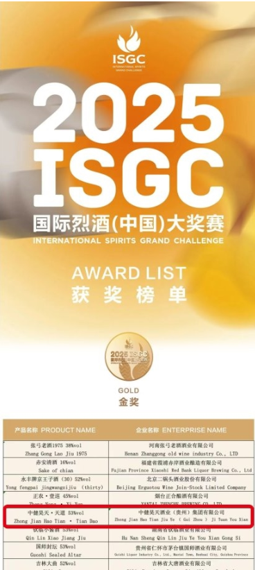 在刚刚落幕的2025年度国际烈酒大奖赛(International Spirits Grand Prix,简称ISGC)上,来自中国的中健昊天酒凭借其卓越的品质与独特的风味,从全球数千款参赛酒品中脱颖而出,一举斩获大赛金奖。这一重量级国际奖项的获得,不仅标志着中健昊天酒的品质赢得了世界级权威品鉴体系的认可,更向世界展现了中国烈酒非凡的酿造实力与文化魅力。