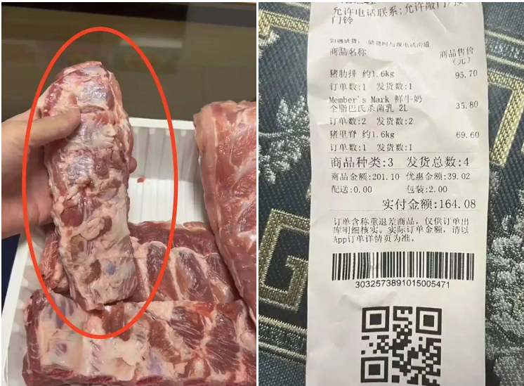 此前,消费者投诉在山姆购买的猪排有异味