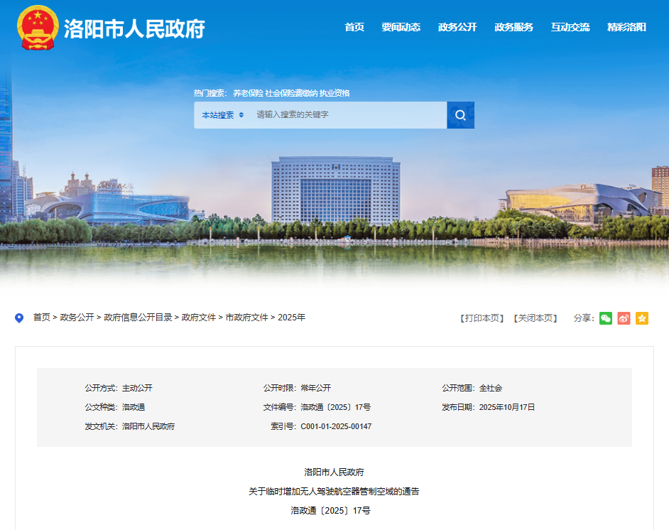 为保障洛阳潮燃星动演唱会活动顺利举办,维护活动现场及周边空域安全,杜绝各类违法违规飞行活动,根据《无人驾驶航空器飞行管理暂行条例》《中华人民共和国治安管理处罚法》《中华人民共和国刑法》等相关法律法规规定,决定临时增加管制空域,现将有关事项通告如下: