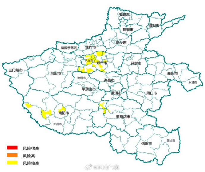 河南省自然资源厅和河南省气象局联合发布地质灾害气象风险预警:2025年10月18日20时至19日20时,河南省地质灾害气象风险预警达到黄色预警的区域为:郑州大部,南阳中部局部及西部局部,驻马店西北部局部,平顶山东南部局部,发生地质灾害的风险较高。