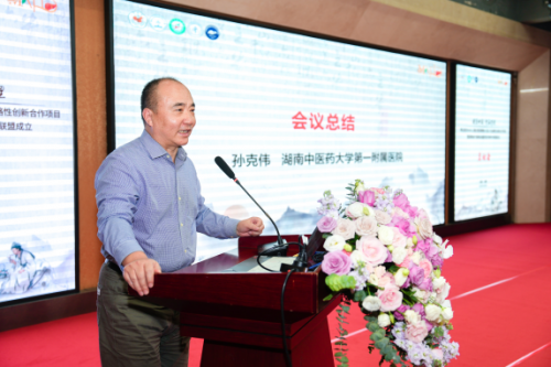 会议最后,湖南中医药大学第一附属医院孙克伟教授作总结发言。他表示,本次大会通过对中西医结合肝病专业知识的深入交流探讨,带来了一场精彩的学术盛宴,开启了中国MAFLD百万数据队列研究的新篇章。该创新合作项目依托全国肝病专家,通过收集临床真实数据和信息,帮助医生更好地了解肝病发生规律,为疾病预防、诊断和治疗方案制定提供科学依据。未来,在全国代谢相关脂肪性肝病学术联盟指导下,湖南省代谢相关脂肪性肝病学术联盟将积极推进肝病防治一体化建设、科研创新与人才培养,不断提升肝病诊疗水平,推动脂肪性肝病领域整合发展,为实现健康湖南、健康中国的宏伟目标贡献专业力量。