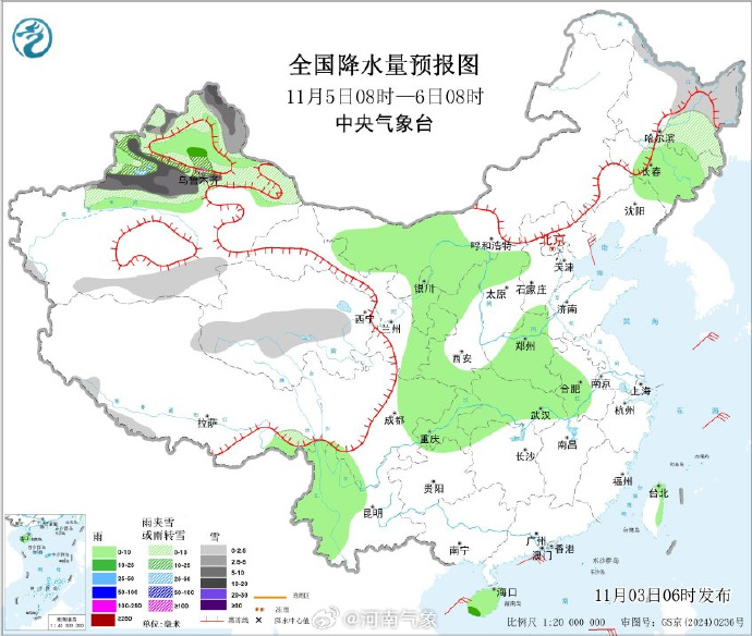 今天(11月4日),河南全省以多云天气为主,大部分地区的最高气温维持在20℃左右。根据河南省气象台的预报,这种晴朗干燥的天气格局将持续到明天白天。 天气转折点预计出现在明天夜里。受高原槽东移影响,一场覆盖全省的降水过程将自西向东展开,届时,
