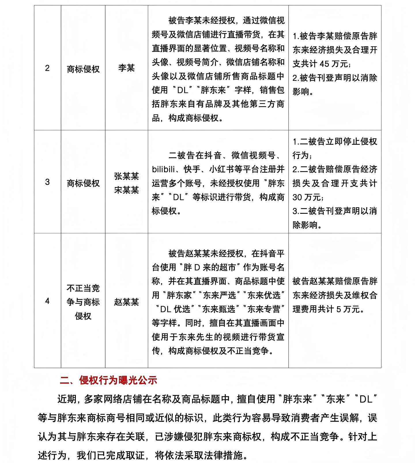 胖东来指出,近期,多家网络店铺在名称及商品标题中,擅自使用“胖东来”“东来”“DL'等与胖东来商标商号相同或近似的标识,此类行为容易导致消费者产生误解,误认为其与胖东来存在关联,已涉嫌侵犯胖东来商标权,构成不正当竞争。针对上述行为,胖东来已完成取证,将依法采取法律措施。