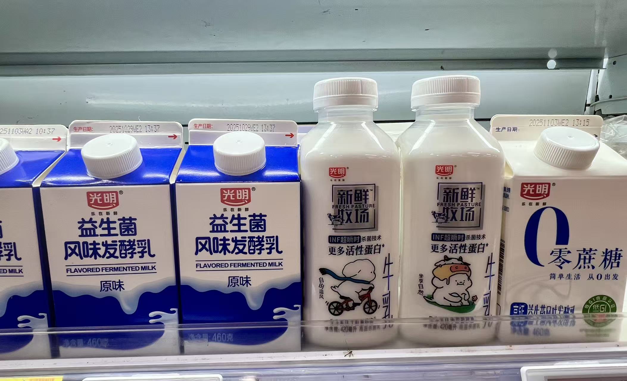 (超市货架上的光明产品)
