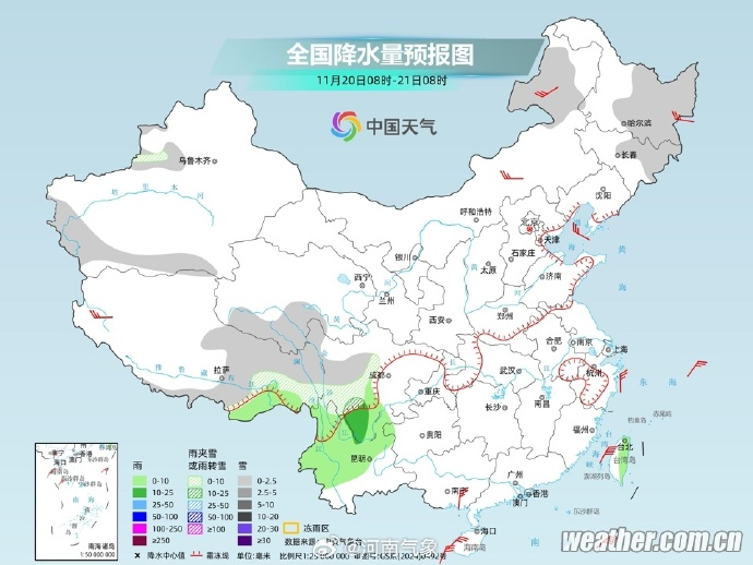 寒潮“路过”河南 昨天白天,我省南部出现了小雨雪,到下午以后,全省降水逐渐结束。11月17日7时至18日7时,在洛阳南部、南阳、驻马店南部、信阳南部局部出现中雪,信阳鸡公山站出现大雪。全省大部出现6到7级大风,局地8到10级。 今天凌晨全省
