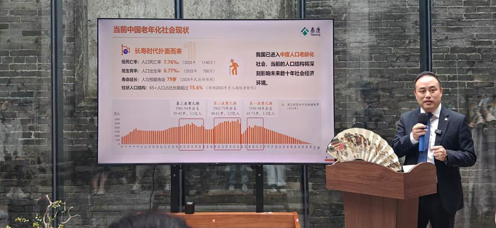 山夏学堂内,广州泰康粤园医院院长张志凌解读了泰康之家医养融合实践。针对我国 78% 老年人患有慢性病的现状,泰康打造 “一个社区 + 一家医院” 的闭环整合型医养服务,覆盖 “防护 - 治疗 - 康复 - 长期护理 - 安疗” 全流程。在慢性病管理方面,泰康为入住长者建立详细健康档案并全面评估,定制包含饮食、运动、药物治疗的个性化干预方案,定期监测调整;依托庞大医疗网络,实现线上线下服务一体化,让长者足不出户享受优质医疗保障。