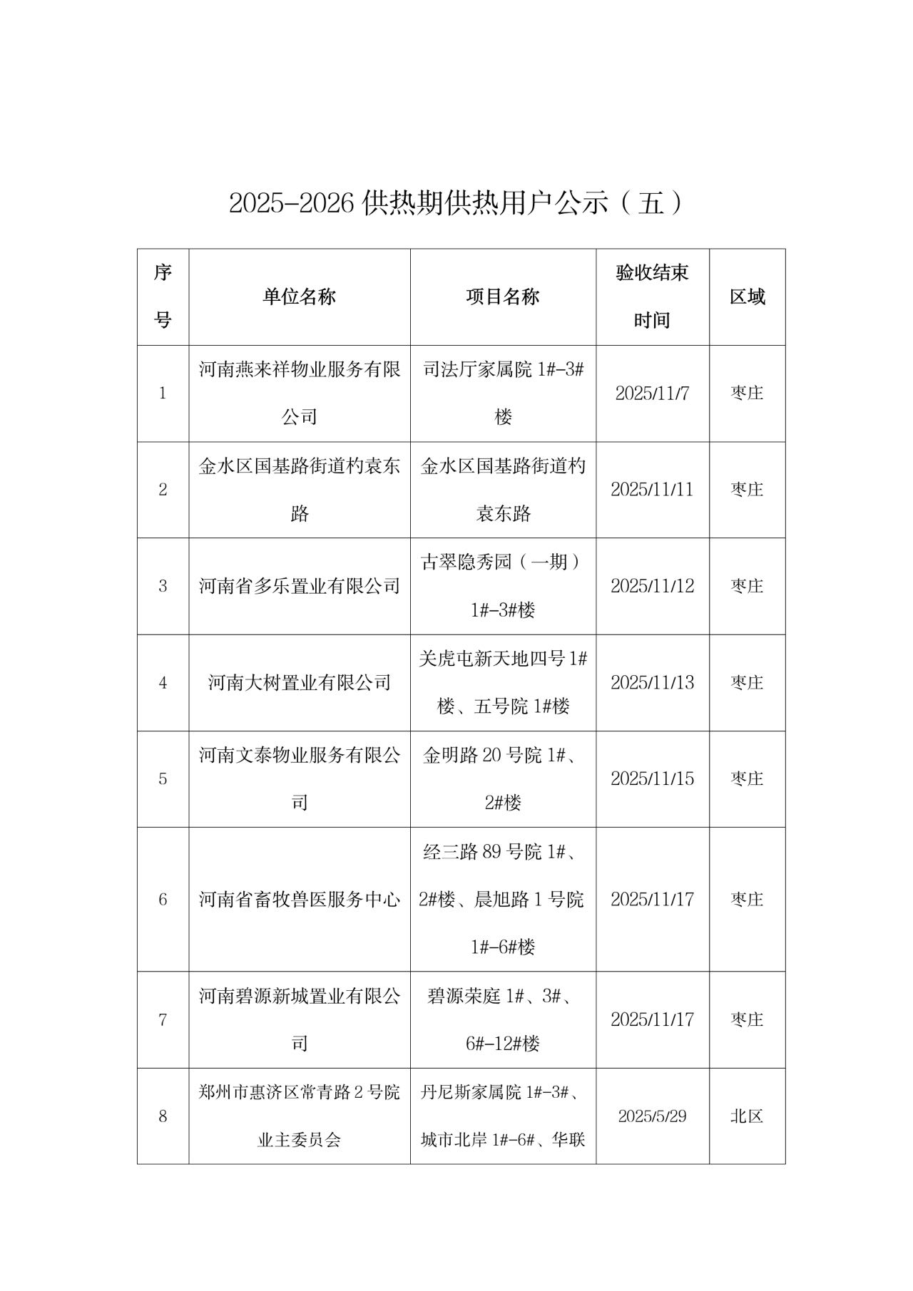附表:2025-2026供热期供热用户名单(五)