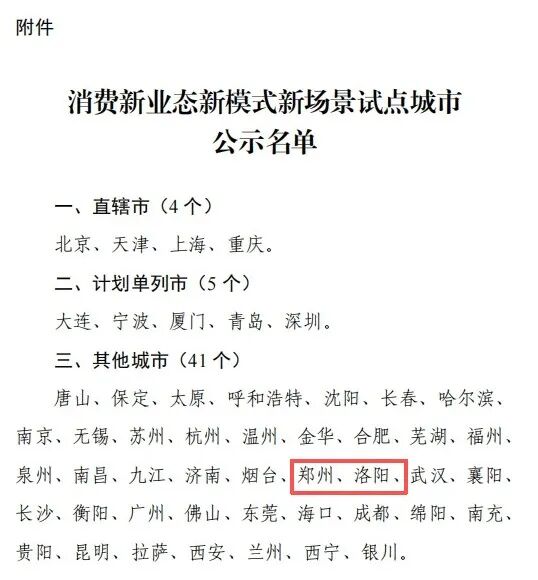 1月20日,财政部、商务部对消费新业态新模式新场景试点城市竞争性评审结果进行公示,北京、天津、上海、重庆、郑州、洛阳等50城入选。公示时间为11月20日至28日。