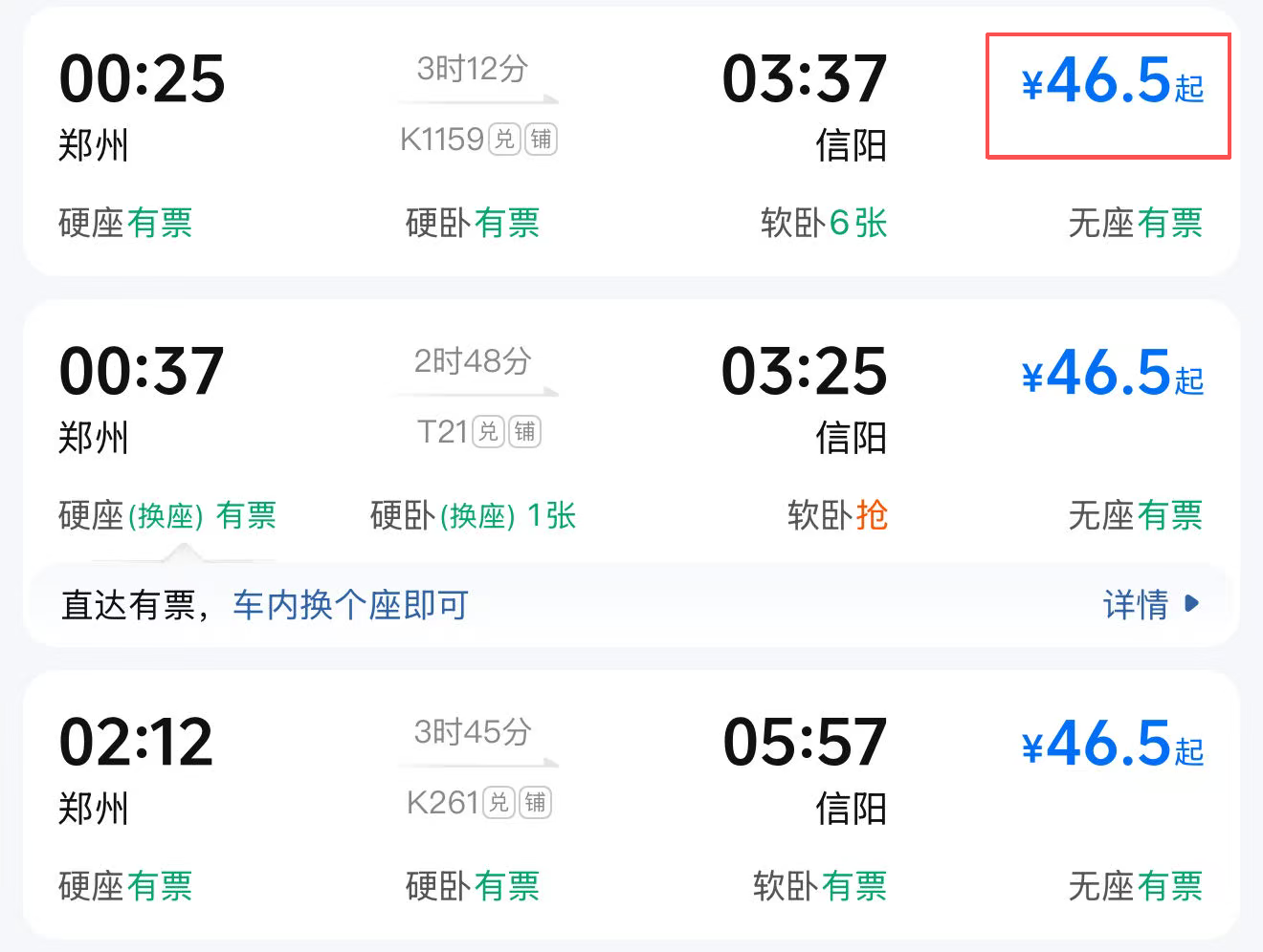 ①火车,票价46.5元起,乘坐时长为3小时左右