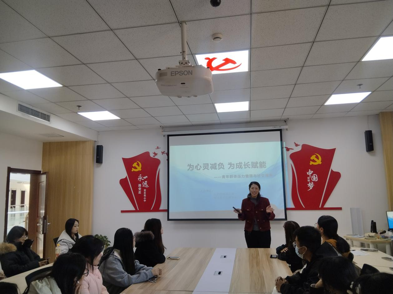 活动现场,王老师结合当代大学生主要压力来源与青年群体工作生活实际,从专业视角解析了青年压力的主要来源。“学习成绩的焦虑、就业前途的迷茫、社交认同的渴望,这些都是青年成长路上的常见困扰,处理不当易引发情绪低落、注意力下降等问题。”王老师的分享直击青年痛点,引发在场参与者的强烈共鸣。针对这些问题,她系统拆解了“情绪觉察 - 情绪命名 - 情绪宣泄”三步调节法,通过具象化的案例讲解,帮助青年科学认知自身情绪状态;同时分享了呼吸放松、认知重建等压力疏导技巧,用通俗易懂的语言和可操作的方法,打破青年“面对压力无措、遭遇社交困境无助”的局面