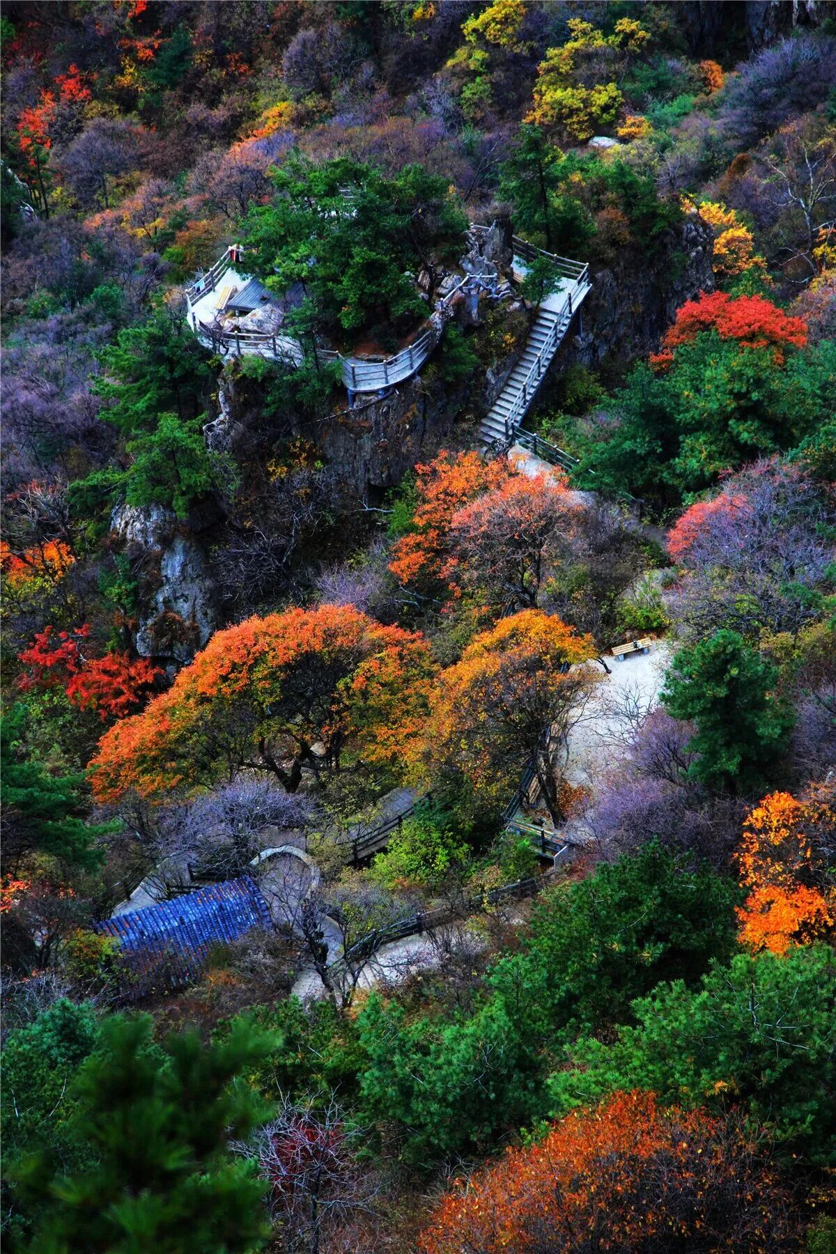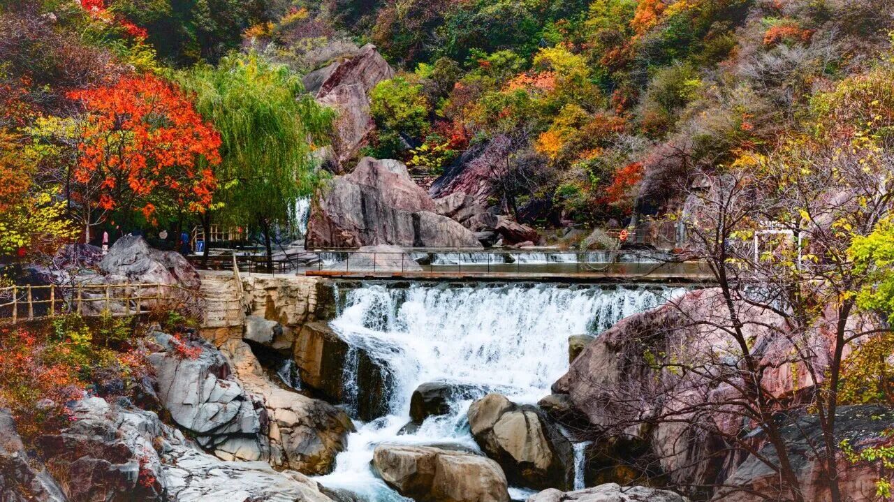 每逢十月中旬至十一月中旬,这里层林尽染。丹崖天路、宝泉之春观景台等地为最佳赏景地,红黄相间,五彩斑斓,一幅绚丽的画卷展现在眼前。