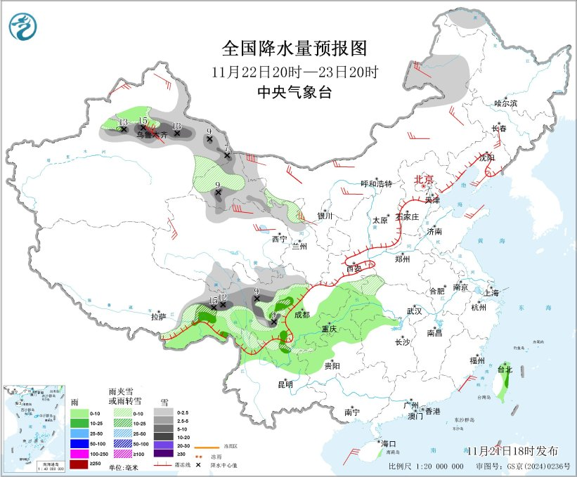 寒潮“路过”河南 昨天白天,我省南部出现了小雨雪,到下午以后,全省降水逐渐结束。11月17日7时至18日7时,在洛阳南部、南阳、驻马店南部、信阳南部局部出现中雪,信阳鸡公山站出现大雪。全省大部出现6到7级大风,局地8到10级。 今天凌晨全省