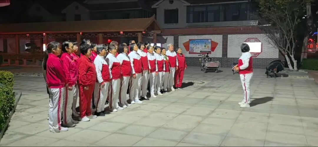夜幕降临,在曲寨村文化广场上,“新时代合唱团”的歌声再次响起。