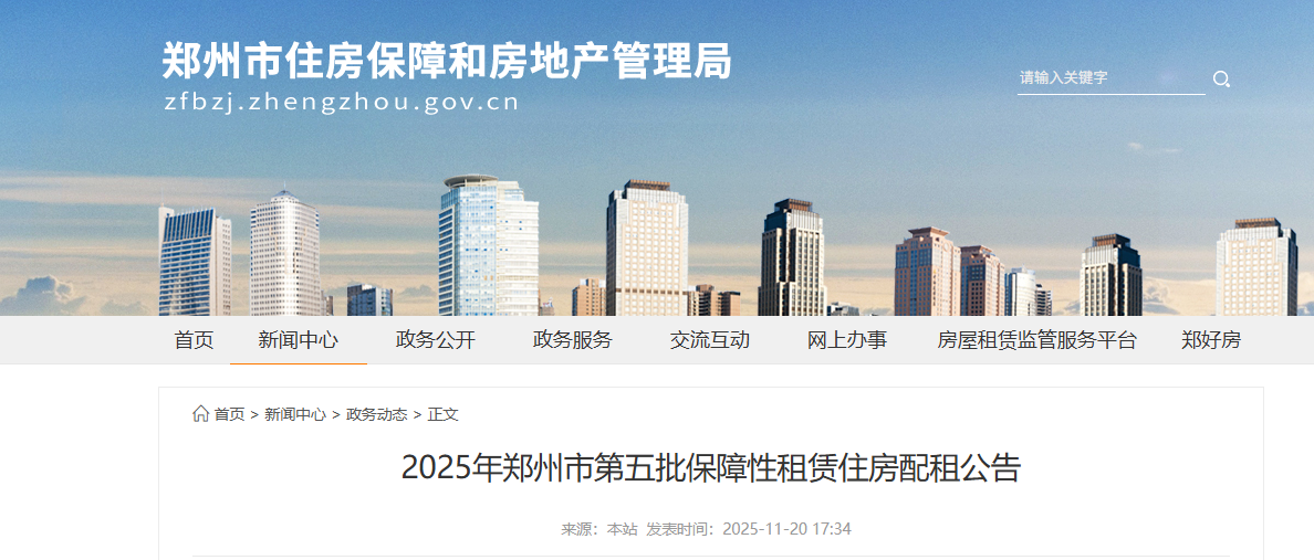 定于2025年11月25日09:00将房源上线“郑州市保障性租赁住房系统”进行配租。