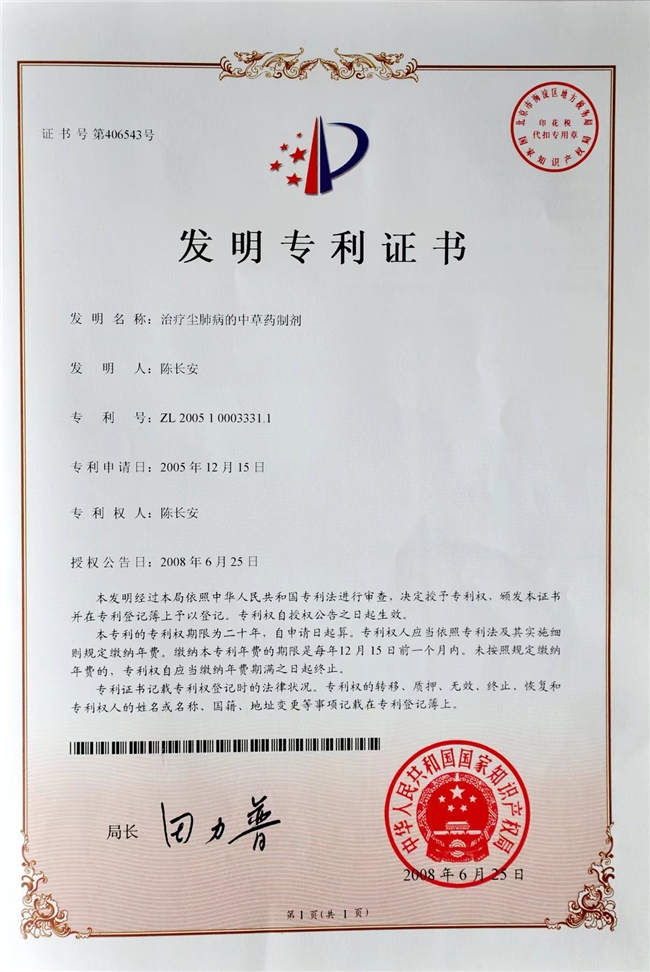 2003 年,遵义地区部分劳动者因职业接触引发矽肺疫情,给患者健康与生活带来严重影响。在此背景下,当地陈氏家族第四代传人陈长安,依托家传的苗药配方,参与到 21 名重症矽肺患者的临床实践中。经过一段时间调理,“肺长安” 中草药对于肺部疾病方面的相关成效得到认可,并被纳入地方部门协调会纪要。为进一步挖掘该配方价值,当地还专门组建 “肺长安” 中草药资源开发研究所,推动配方的系统研究与优化,相关工作也被记录于遵市办发 [2004] 63 号《矽肺病治疗座谈会会议纪要》中。