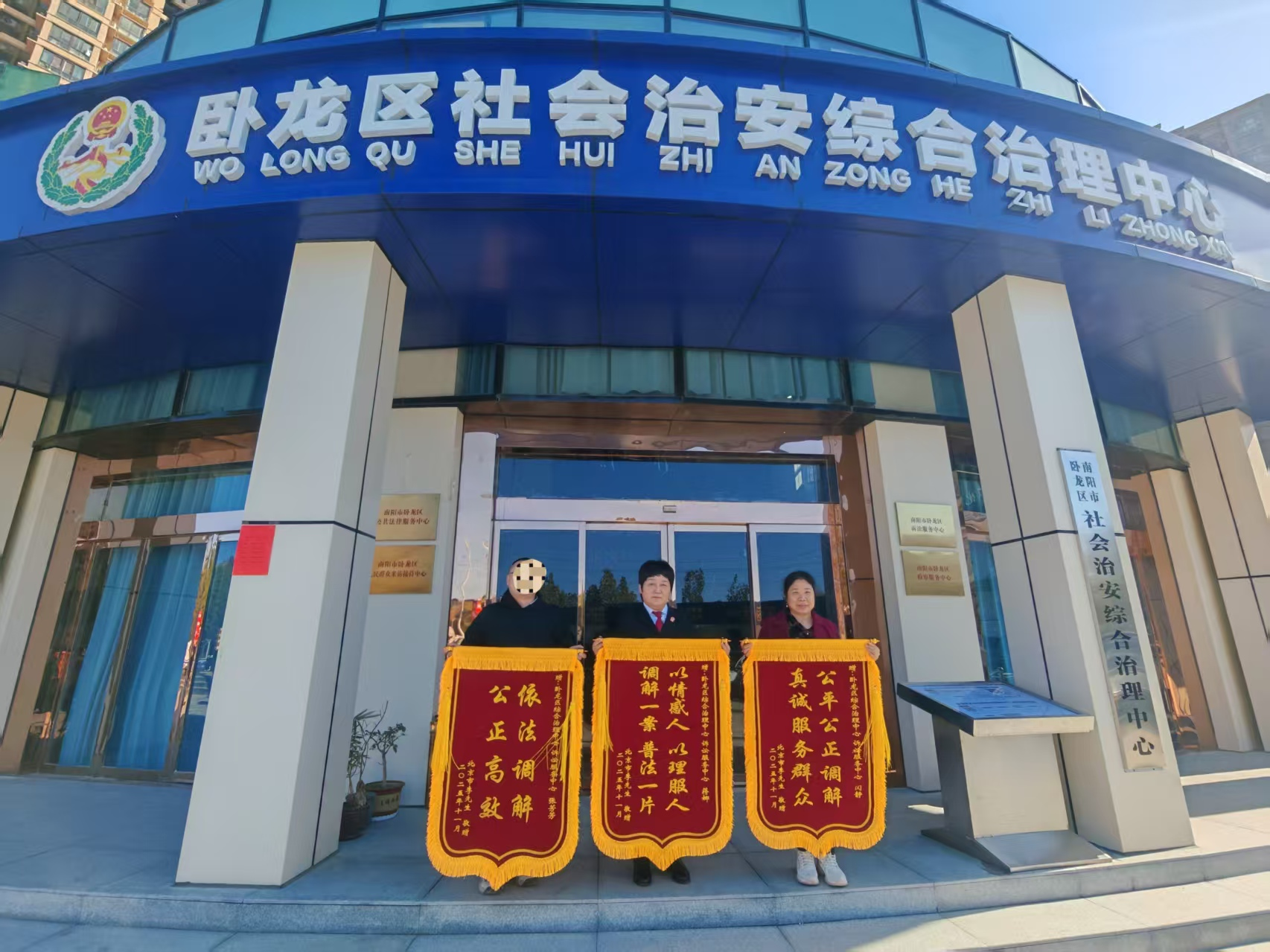 这三面锦旗,不仅是群众对卧龙区法院驻综治中心诉讼服务团队的认可,更是该团队坚持和发展新时代“枫桥经验”,将非诉讼纠纷解决机制挺在前面,深度参与基层社会治理的生动缩影。下一步,卧龙区法院将继续坚持“抓前端、治未病”理念,以驻点综治中心为抓手,持续探索司法工作与基层治理同频共振的新路径,为推进基层治理现代化注入坚实的司法力量。