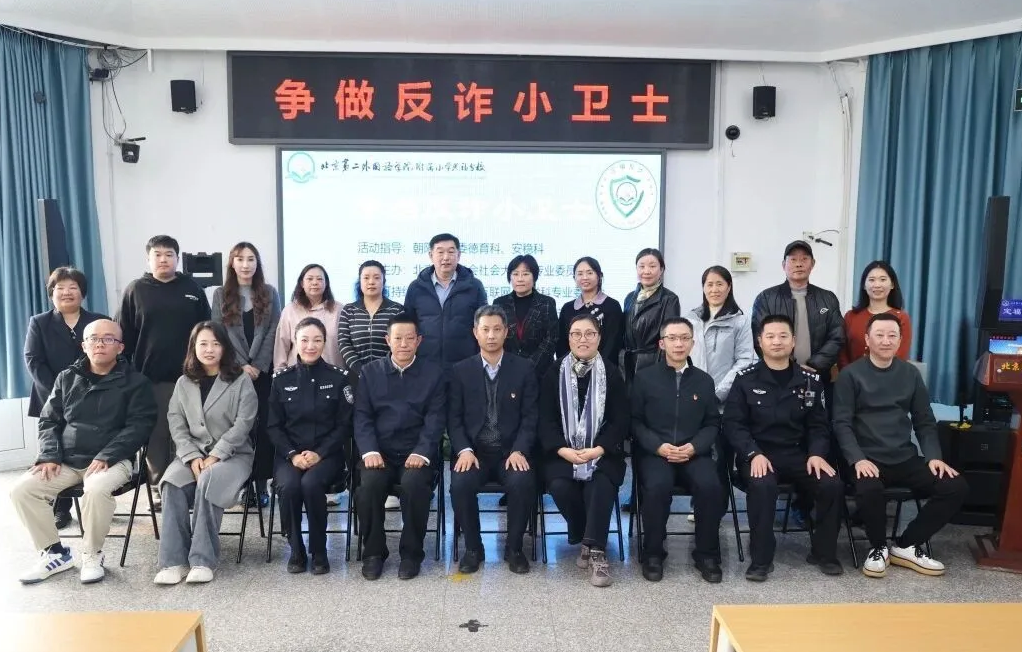 本次活动汇聚校家社多方力量,参与领导及来宾包括朝阳区教委德育科、安稳科负责人,北京市教育学会社会大课堂专业委员会、北京可持续发展教育协会互联网+跨学科专业委员会的专家,朝阳分局反诈中心、三间房乡政府、派出所、泰福宛社区相关负责人,北京第二外国语学院资产处与商学院专家,区内各校教师代表、学校“五老”代表、家长代表等,京外二外学院附属学校干部教师线上参会。众人携手,共同为孩子们织密校园反诈“防护网”。