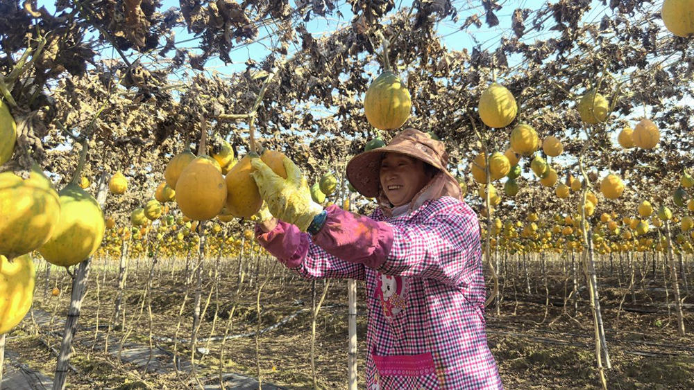 瓜蒌丰产,村民受益。从最初的翻土,施肥,到日常的管护,夹枝,再到如今的采收加工,基地常年为村民提供稳定的务工岗位,让大家实现“家门口就业”。“在这里干活,一天工资100元,一年下来能挣一万多元,不用出门就能赚零用钱,特别方便。”村民李大娘一边分拣瓜蒌籽,一边笑着说。