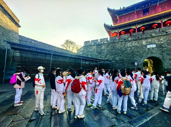 下午,研学团队走进荆州古城,这是一堂深刻的“三国文化”现场思政课。触摸古城墙,回顾风云激荡的历史,同学们在关公“忠义仁勇”的精神传承中,加深了对中华优秀传统文化价值内涵的理解。